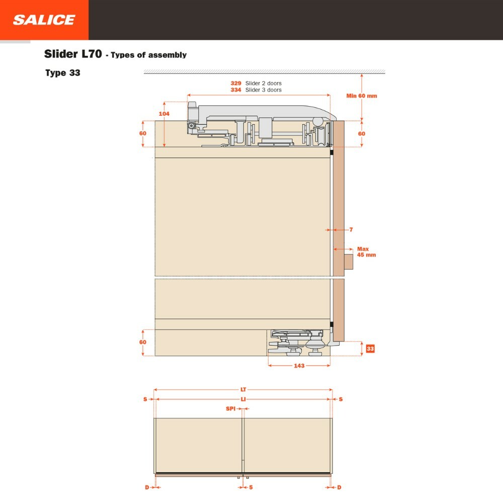 Slider L70 2000 - 2199mm 雙門重型緩衝平趟門